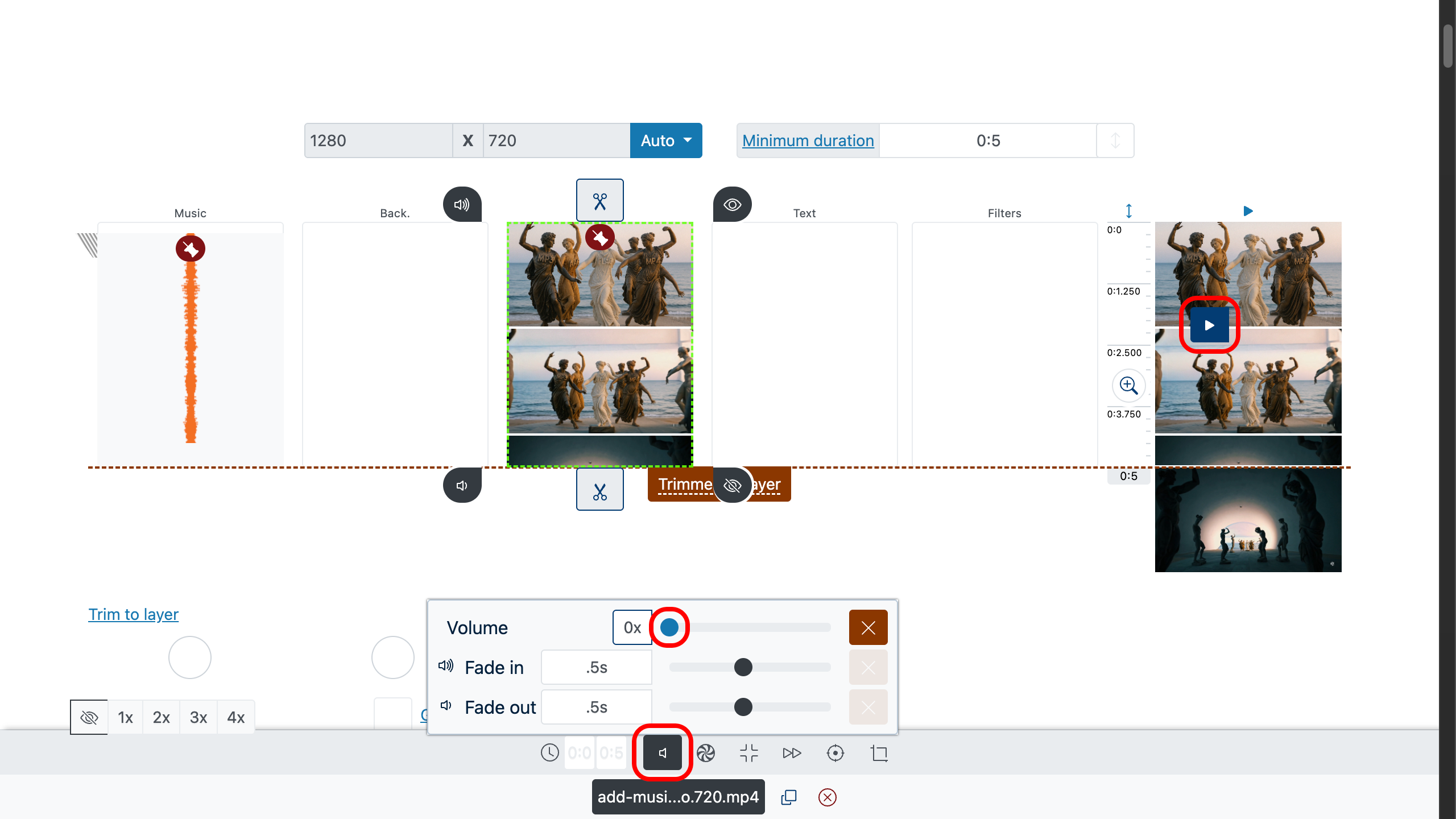 - Az eredeti videó hangerő értékét állítsd 0-ra.